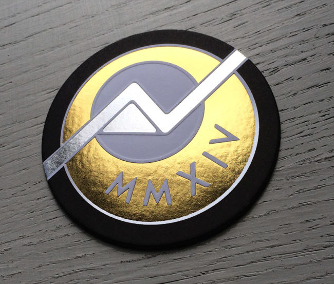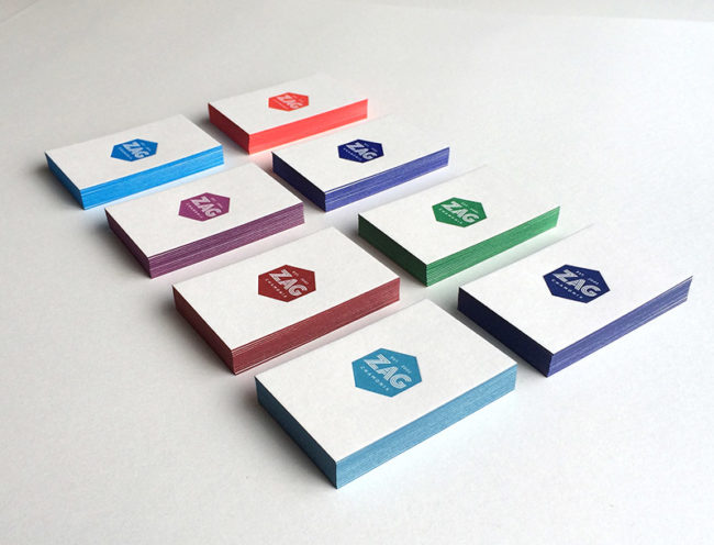 Impression : 1 couleur x 8 teintes en débossage recto / verso Papier : blanc 2 x 300 g Finition : couleur sur tranches Design : Zag Skis