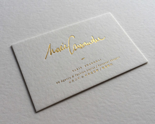 Impression : 1 marquage à chaud recto seul Papier : naturel 500 g Design : La chambre graphique