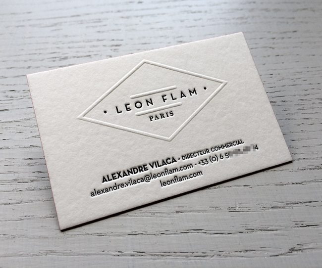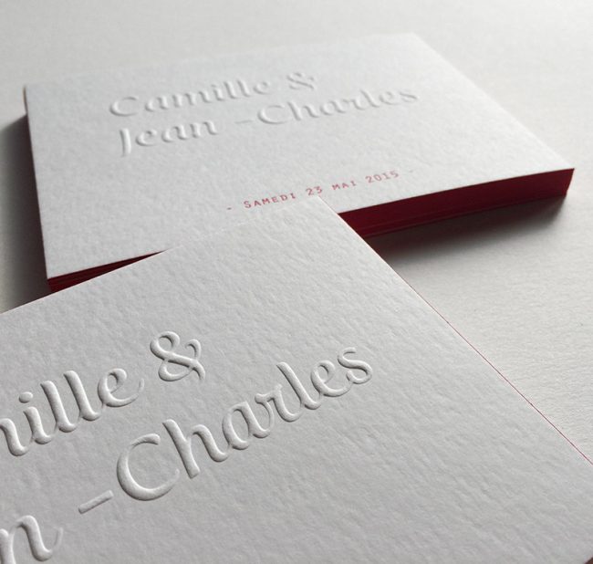Impression : 1 couleur en débossage recto / 1 couleur verso Papier : naturel 500 g Finition : couleur sur tranches