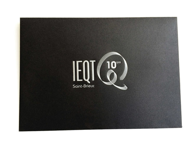 Impression : 1 couleur en débossage + 1 marquage à chaud recto seul Papier : blanc 500 g Finition : couleur sur tranches Design : Avenue 13
