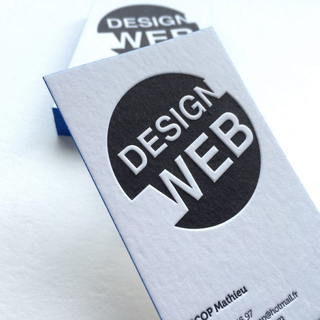 Impression : 1 couleur en débossage recto seul Papier : blanc 500 g Finition : couleur sur tranches Design : Mathieu Lescop