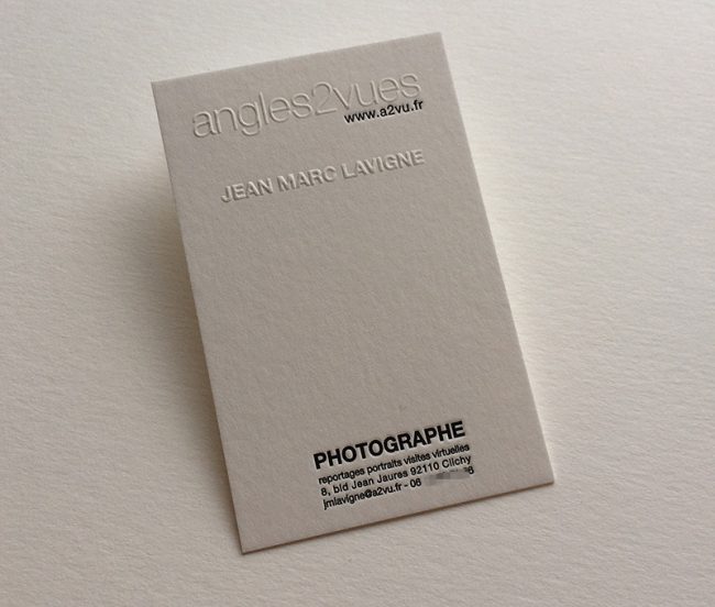 Impression : 1 couleur en débossage + 1 gaufrage recto seul Papier : naturel 500 g Design : Studio Giraud