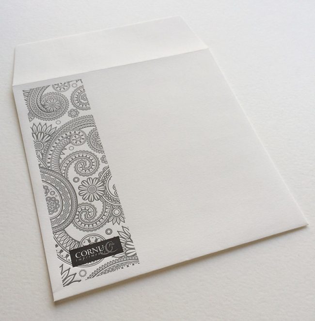 Impression : 1 couleur en débossage recto seul Papier : enveloppe blanche 130 g Design : Imprimerie Cornu