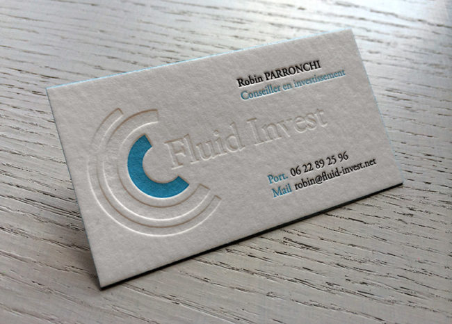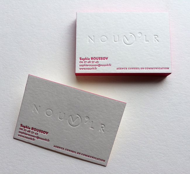 Impression : 2 couleurs en débossage + 1 débossage pur recto seul Papier : naturel 500 g Finition : couleur sur tranches Design : Kaléid