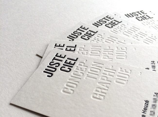 Impression : aplat + 1 couleur en débossage recto / 2 couleurs en débossage verso Papier : 2 x 300 g Finition : couleur sur tranches Design : Oui Design