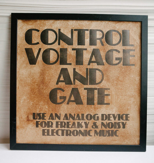 « Il y a trois dates importantes dans la vie d’un homme, le jour de sa naissance, le jour de sa mort et la le jour où il sort un son pour la première fois avec un système modulaire. » Philippe Gully Chaque affiche est unique de par son encrage à l’unité. Existe en fond rusty…