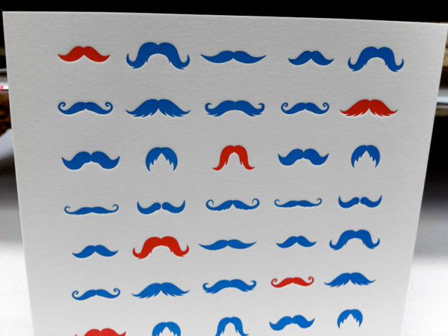 Impression affiche 50 x 70 cm, débossage 2 couleurs et débossage pur R° sur papier 500g. Design par Chattermark.