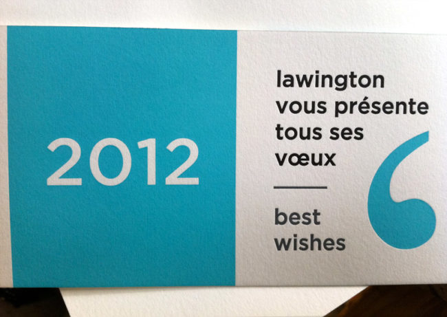 Impression carte de voeux 21 x 10 cm ouvert débossage 3 couleurs R°/ V° sur papier duplex 300g. Design par Linkin