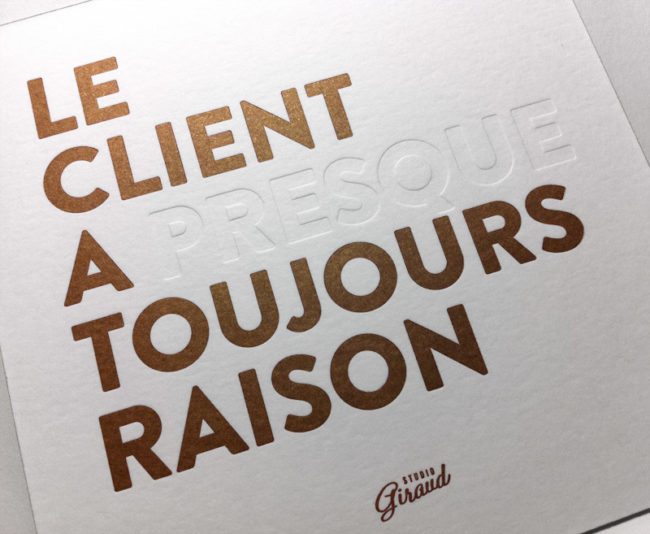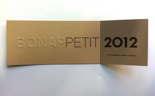 Impression pied de lettre , gaufrage sur papier 100g. Design par Raphaël Campardou