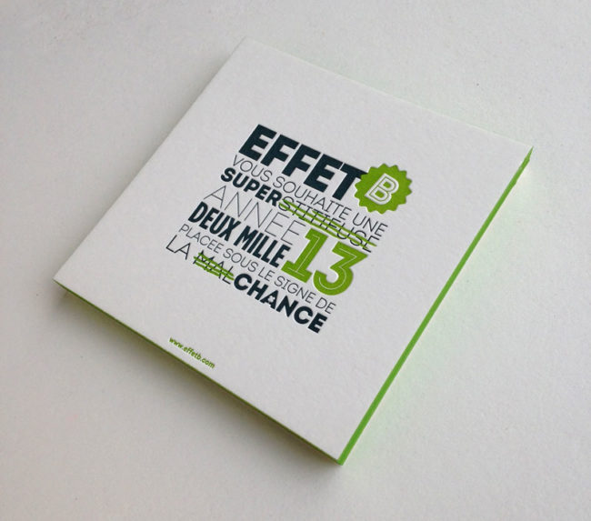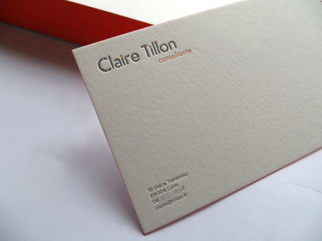 Débossage 2 couleurs R° + couleur sur tranches sur papier 500g. Design par Small Studio