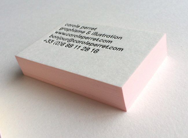 Impression : 1 couleur en débossage recto seul Papier : naturel 500 g Finition : couleur sur tranches Design : Carole Perret