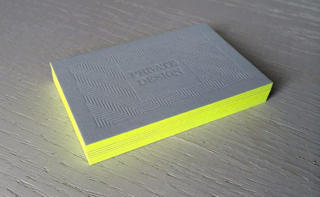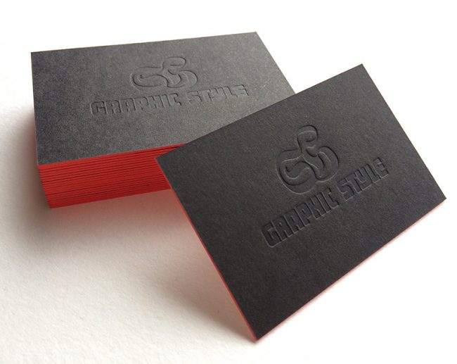 Impression : 2 couleurs en débossage + 1 débossage pur recto / verso Papier : naturel 2 x 300 g Finition : couleur sur tranches
