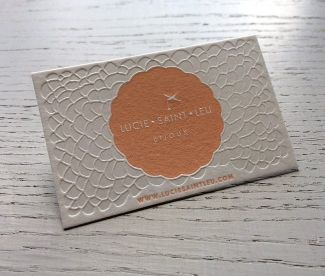 Impression : 1 couleur en débossage + 1 débossage pur recto seul Papier : naturel 500 g Design : Lucie Saint Leu