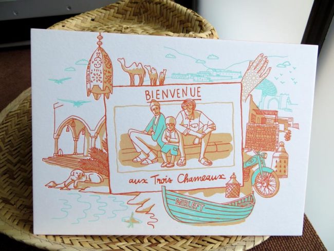 Débossage 2 couleurs sur papier 500g. Design par Raphaëlle Vimont.