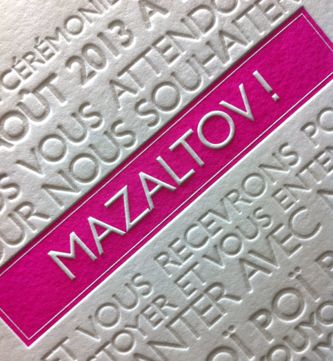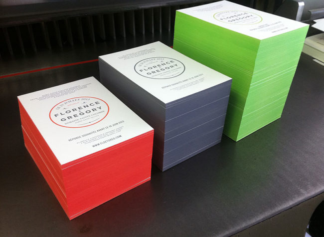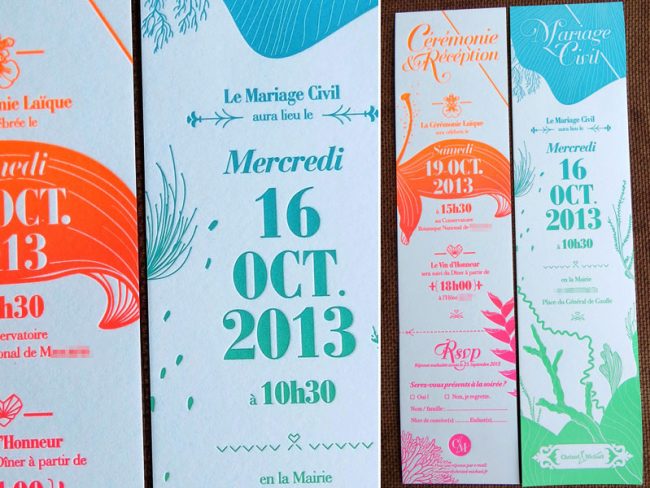 Faire-part en split fountain R° sur papier 300g. Design par Michael Bernard