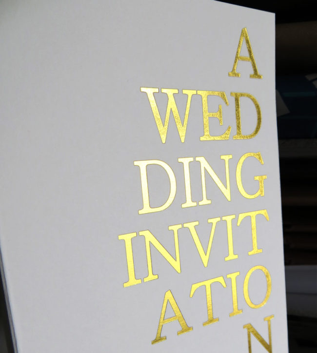 Débossage 1 couleur et marquage à chaud or + rainage sur papier 300g.