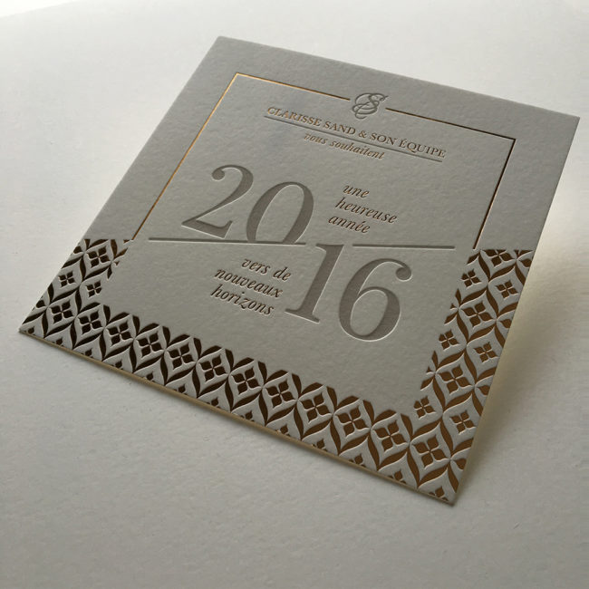 Impression : 1 marquage à chaud or + 1 couleur en débossage recto seul Papier : 500 g