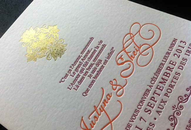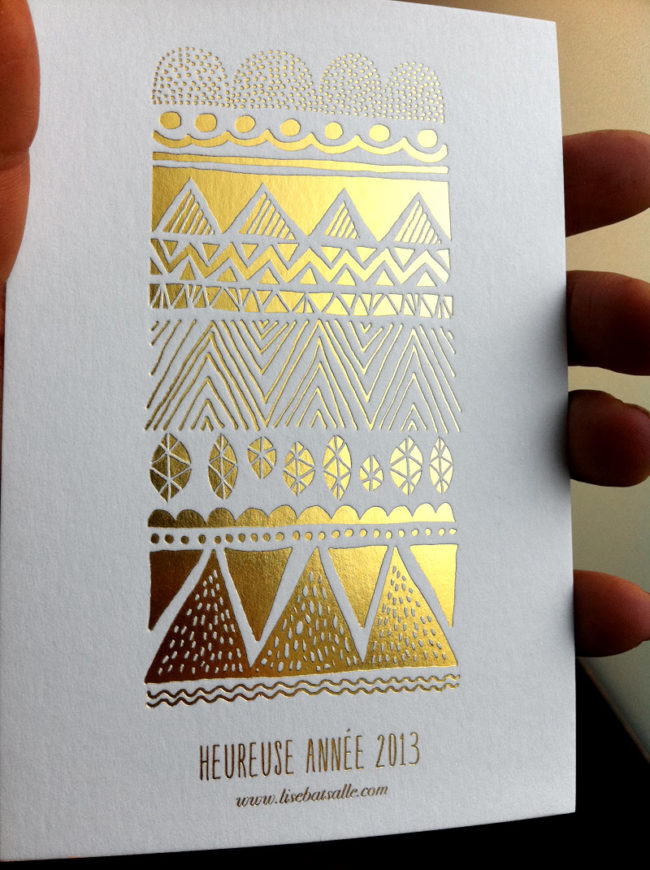 Marquage à chaud or sur papier 300g. Design par Lise Batsalle.