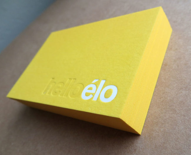 Impression : débossage pur + 2 couleurs en débossage R°/V° Papier 2 x 300g Finition : couleur sur tranches Design par Elodie Chaillous