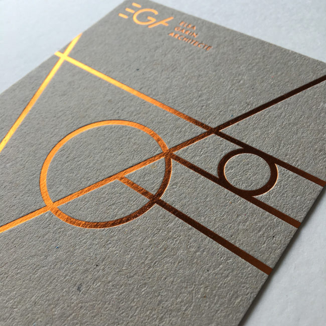 Impression : 1 marquage à chaud cuivre recto seul Papier : carton 400 g Design : Lise Batsalle