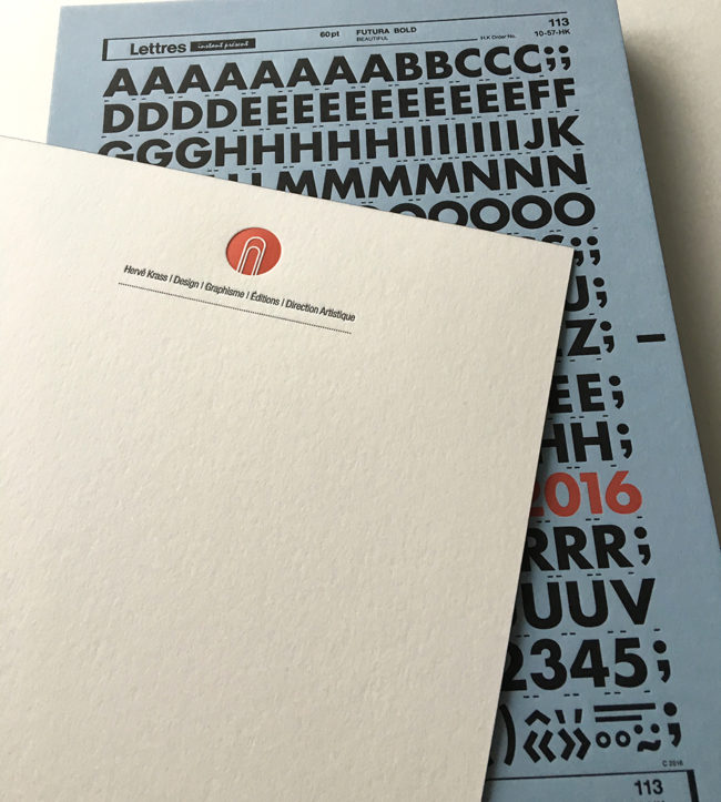 Impression : 2 couleur en débossage Papier bleu et papier blanc Design : Hervé Krass