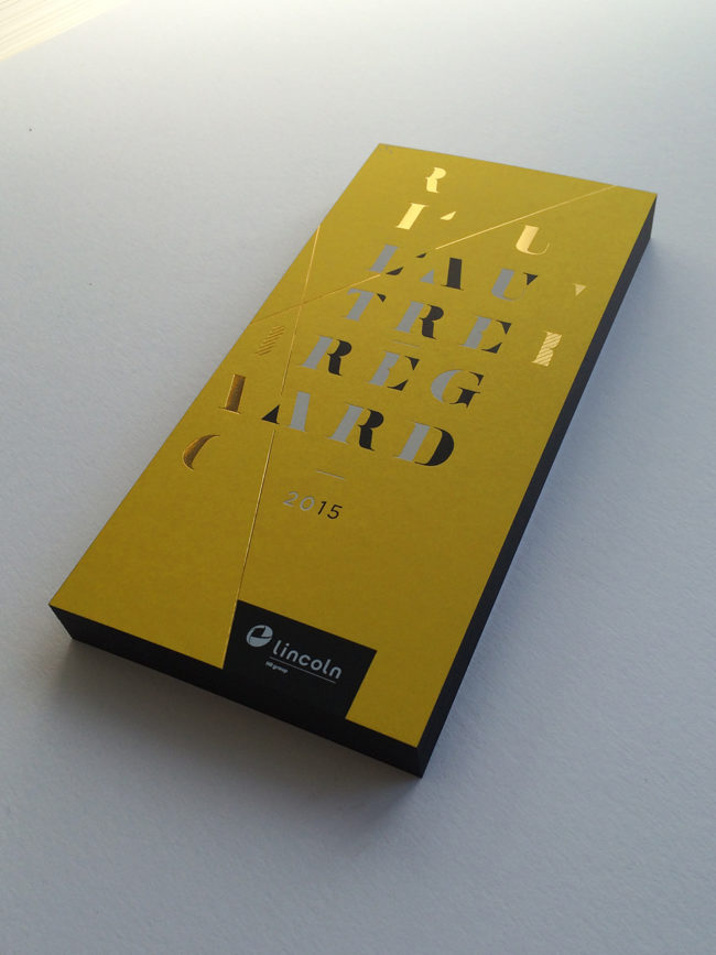 Impression : 2 marquages à chaud or et blanc + 1 couleur Papier : 2 x 300 g Finition : couleur sur tranches