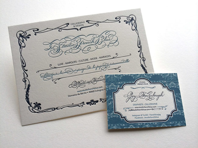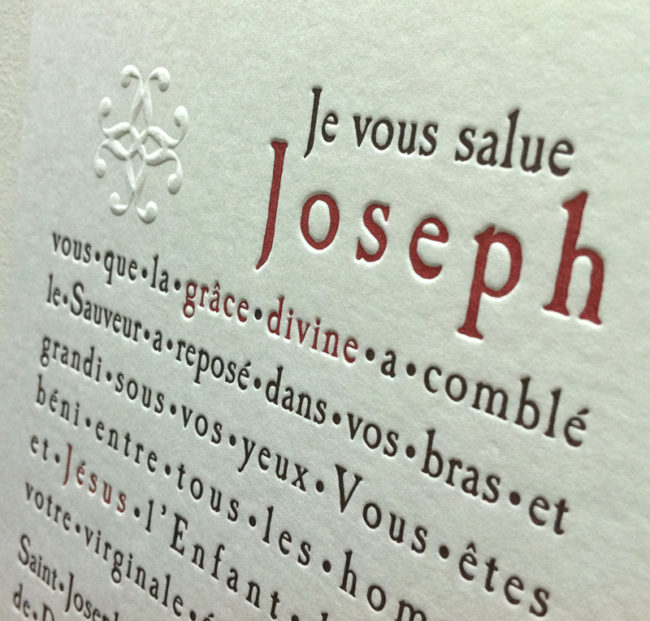 Impression : 2 couleurs en débossage recto seul Papier : naturel 500 g Calligraphie: Joy Fairclought