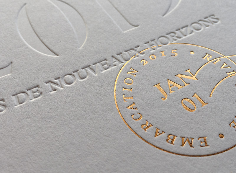 Impression : 1 débossage pur + 1 marquage à chaud cuivre recto / verso Papier : blanc 2 x 300 g Finition : couleur sur tranches Design : Rive Noire Navigation articlePrécédent Article précédent :Carte de visite agence de communicationSuivantArticle suivant :Carte de visite photographe